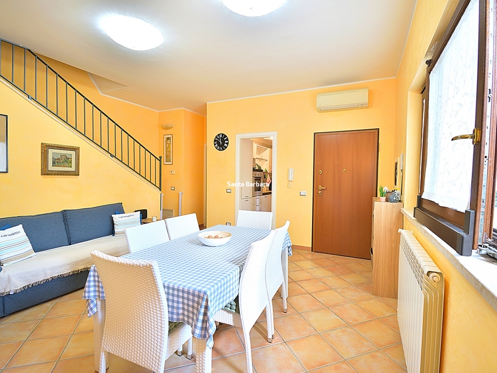Fregene centro - Via Numana, elegante villa bifamiliare, di recente costruzione, con spazi esterni e posto auto privato. E’ situata a soli 300 metri dal mare e a 600 metri dalla storica pineta. Si sviluppa su quattro livelli, per una superficie interna di circa 100 mq, oltre ad un bellissimo portico di circa 12 mq e un giardino esterno di 60 mq circa. Al piano terra troviamo un luminoso salone a vista, un cucinotto separato e il bagno. Al piano seminterrato un’ampia sala hobby con bagno, ideale come spazio multifunzionale. La sala ha un’intercapedine che gira tutto intorno alla casa per proteggerla dall’umidità. Al primo piano due camere da letto, di cui una con ampio balcone ed un bagno con vasca. Al secondo piano è presente una cameretta, un bagno e un terrazzo. La villa è dotata di portone blindato, infissi in legno con doppio vetro, inferriate in tutti gli ambienti, pavimenti in cotto, aria condizionata, riscaldamento autonomo, nonché, scale in marmo e ferro battuto. La villa viene venduta comprensiva di tutti gli arredi, anche per questo risulta essere una soluzione ideale per chi desidera vivere in una residenza elegante e confortevole, situata a pochi passi dal mare e dai principali servizi. € 700.000